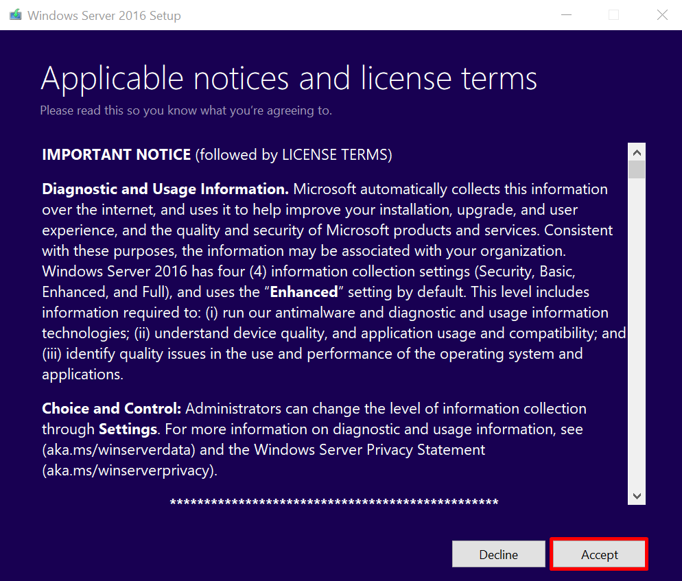 Cliquez sur Accepter les avis applicables et les conditions de licence pour continuer à utiliser les fonctionnalités et les avantages de ce serveur.